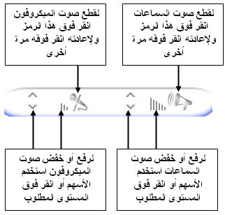 لوحة التحكم في مستوى صوت السماعات والميكروفون.
